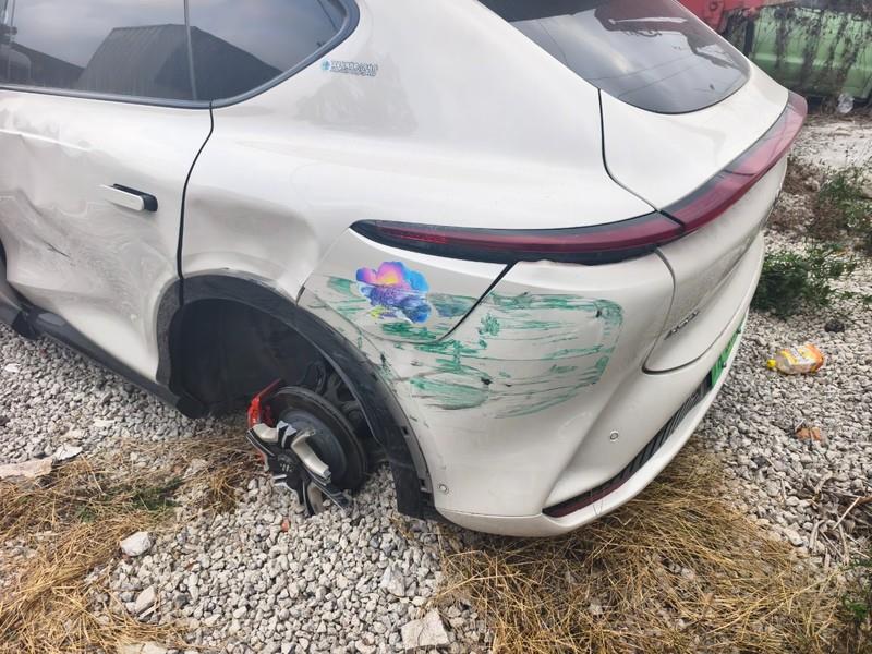 自行考虑解码费用;新能源车随车充电桩等附件不包含在标的范围内。为规避电池自燃风险,电池包与车身分离不属于重大拆检。车子受损严重,室外停放,买家需要承担雨雪淋的风险,请谨慎出价。
