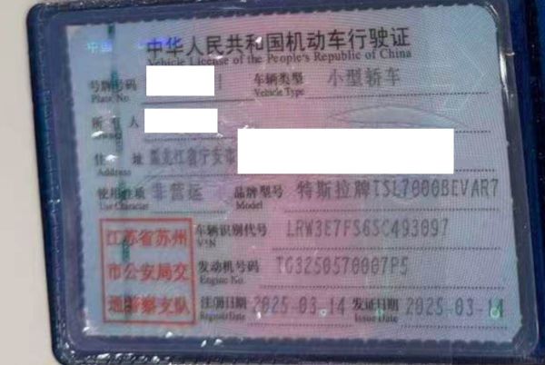 初次登记日期 2025-03-14 车辆名称 特斯拉