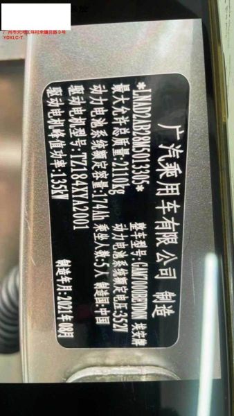 初次登记日期 2021-09-15 车辆名称 埃安 AION