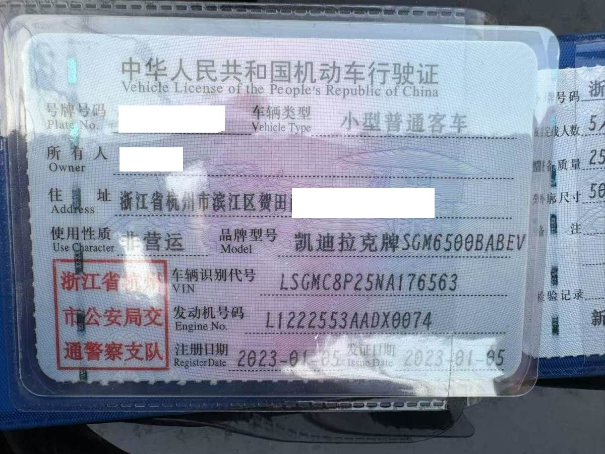 初次登记日期 2023-01-05 车辆名称 凯迪拉克 锐歌