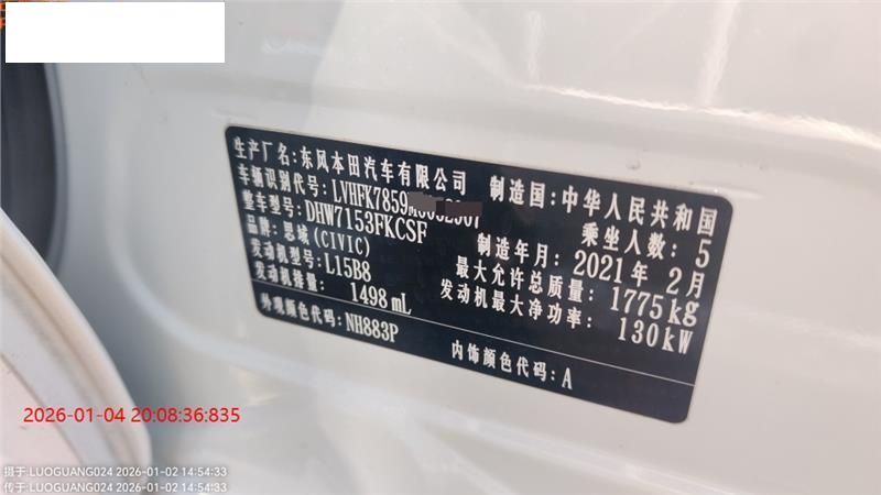 初次登记日期 2021-03-23 车辆名称 本田 思域