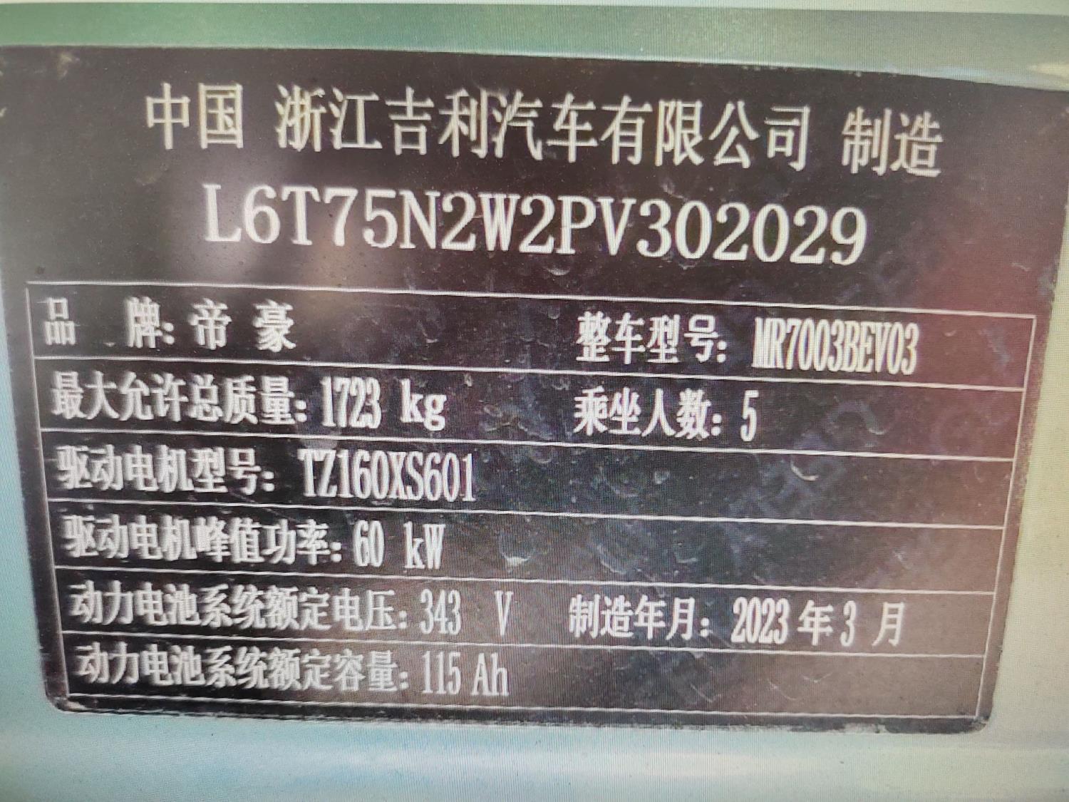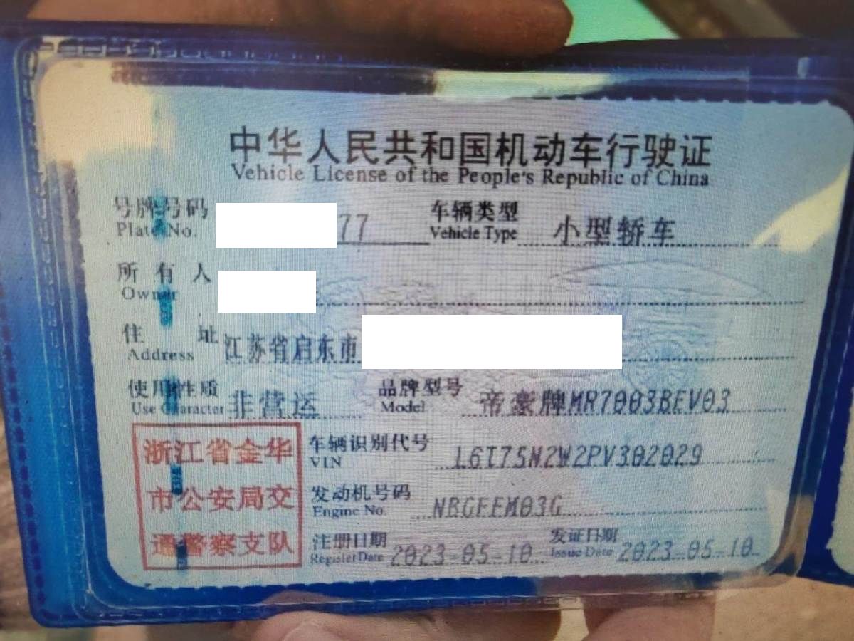 车牌号 浙****** 品牌 吉利