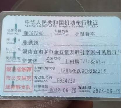 车辆归属地 湖南省湘潭 车辆停放仓库 湖南省湘潭市湘乡市
