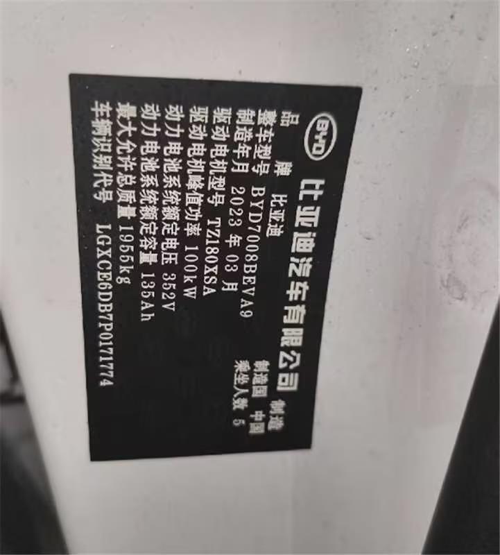 初次登记日期 2023-06-16 车辆名称 比亚迪 秦