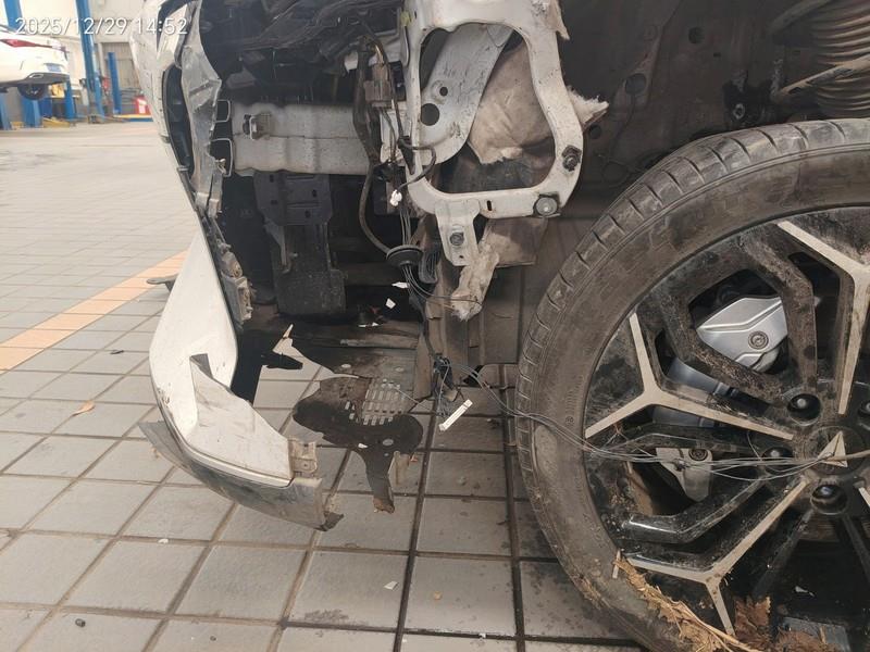 标的车前部受损严重,烦请报价。;停放地:山东省济宁市任城区自行考虑解码费用;新能源车随车充电桩等附件不包含在标的范围内。为规避电池自燃风险,电池包与车身分离不属于重大拆检。车子受损严重,室外停放,买家需要承担雨雪淋的风险,请谨慎出价。