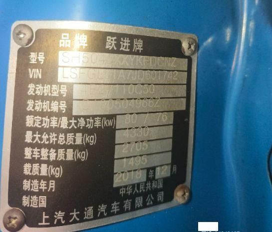 初次登记日期 2018-12-06 车辆名称 上汽轻卡 上骏X系