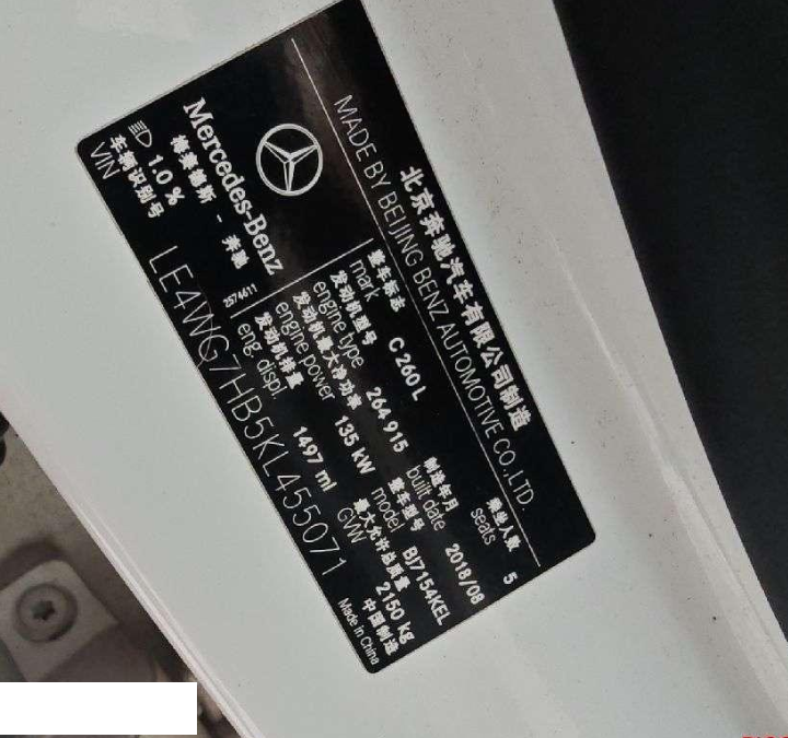 初次登记日期 2019-01-03 车辆名称 奔驰C级