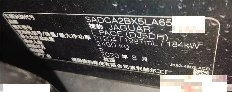 初次登记日期 2021-02-25 车辆名称 捷豹F-PACE
