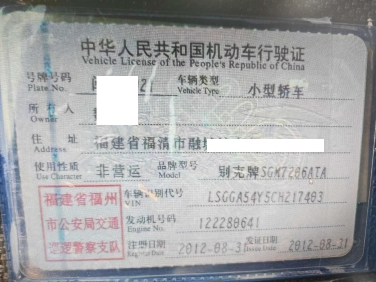 初次登记日期 2012-08-31 车辆名称 别克 君威