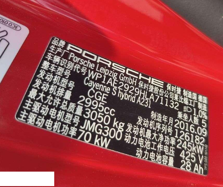 初次登记日期 2017-01-20 车辆名称 保时捷 Cayenne新能源