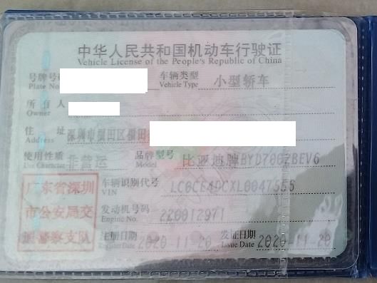 初次登记日期 2020-11-20 车辆名称 比亚迪