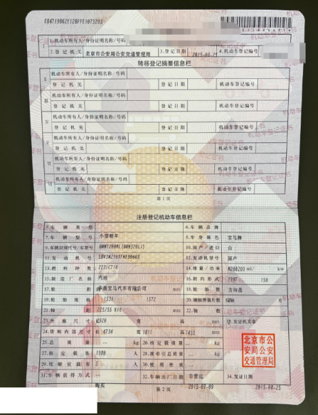 初次登记日期 2015-08-25 车辆名称 宝马3系