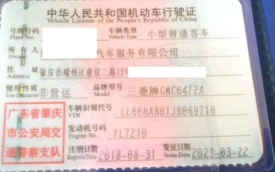 车辆归属地 广东省肇庆市 车辆停放仓库 广东省肇庆市肇庆市