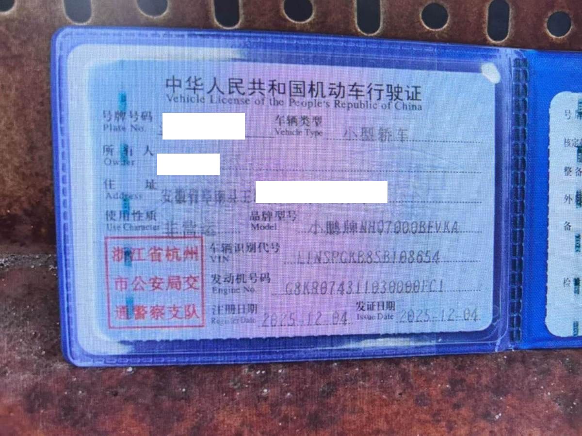 初次登记日期 2025-12-04 车辆名称 小鹏牌