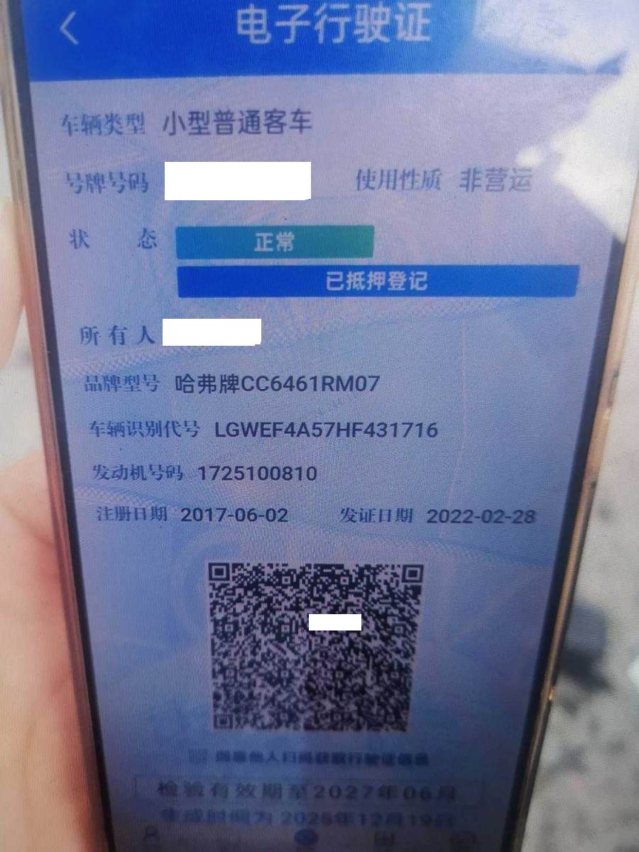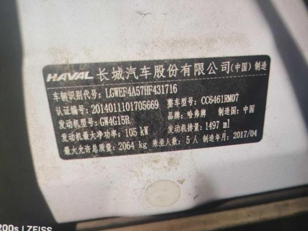 初次登记日期 2017-06-02 车辆名称 哈弗H6