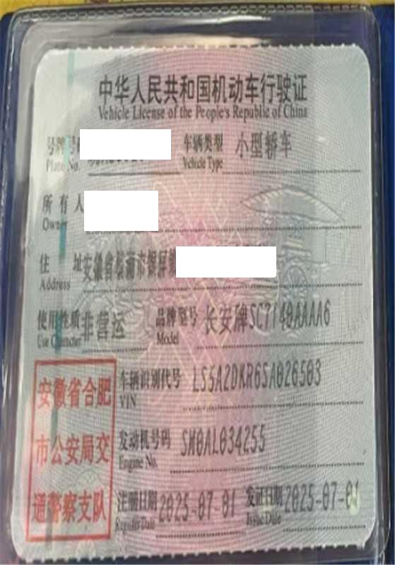 车辆归属地 安徽省合肥市 车辆停放仓库 安徽省合肥市合肥市