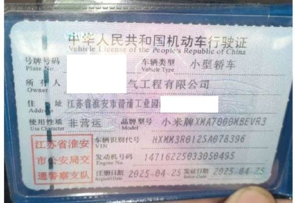 初次登记日期 2025-04-25 车辆名称 小米汽车 小米