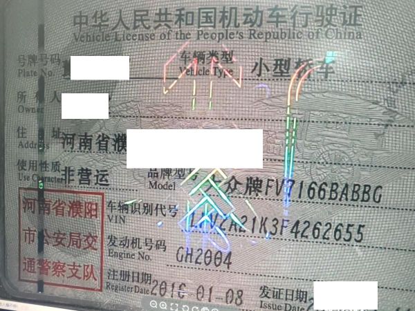 车牌号 豫****** 品牌 大众