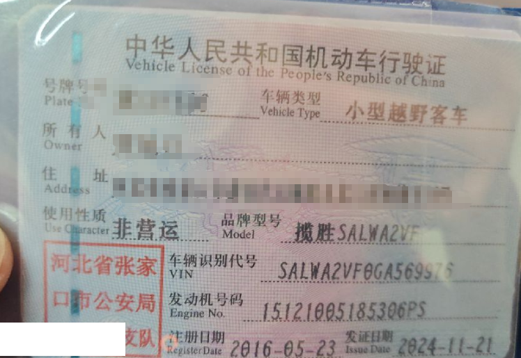 车辆归属地 河北省张家口市 车辆停放仓库 北京市