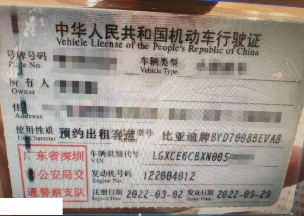 车辆归属地 广东省深圳 车辆停放仓库 广东省深圳