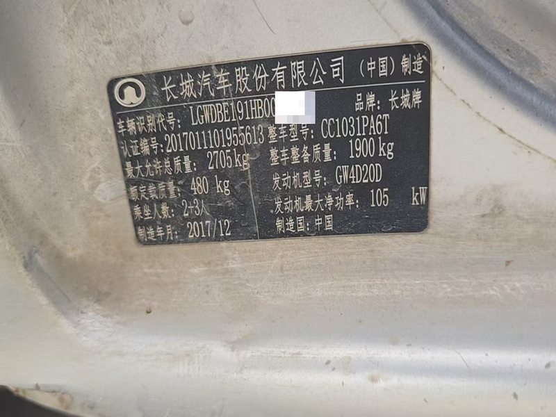 初次登记日期 2018-01-17 车辆名称 长城 风骏