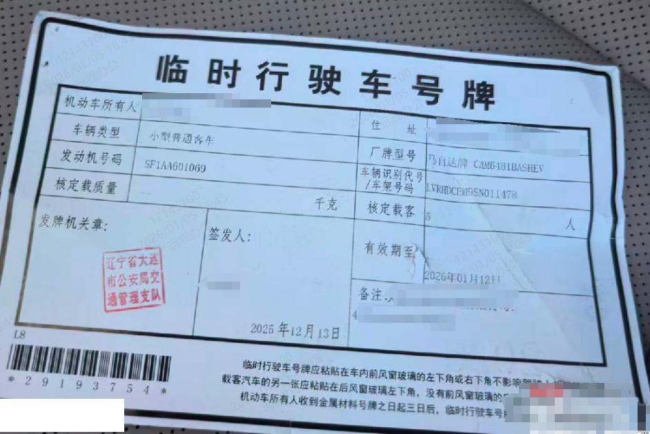车牌号 辽****** 品牌 马自达
