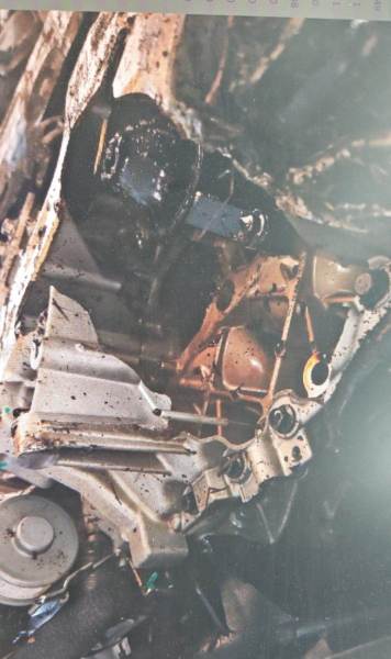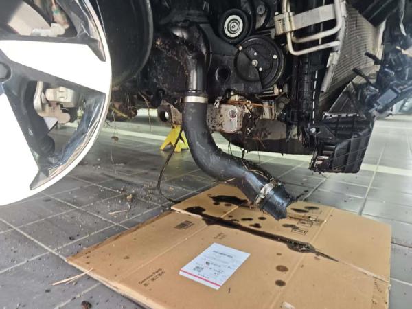 碰撞,翻车,发动机机油倒灌,发动机下沉,变速箱目前看不出来【二询备注:变速箱,发动机都受损】