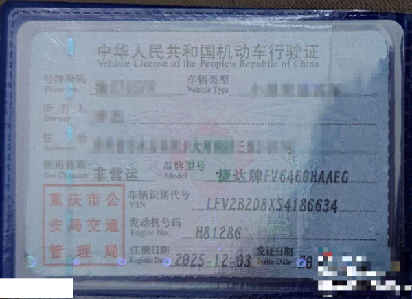 初次登记日期 2025-12-03 车辆名称 捷达VS8