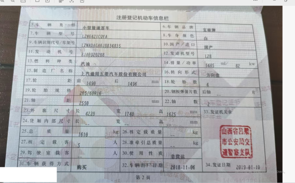 初次登记日期 2019-01-10 车辆名称 宝骏510