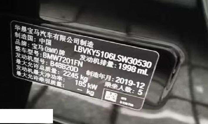 初次登记日期 2020-01-02 车辆名称 宝马5系