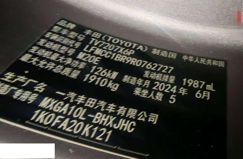 初次登记日期 2024-07-25 车辆名称 丰田 卡罗拉锐放