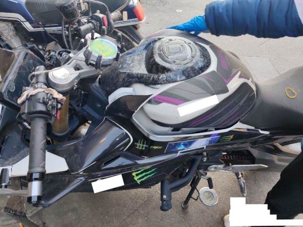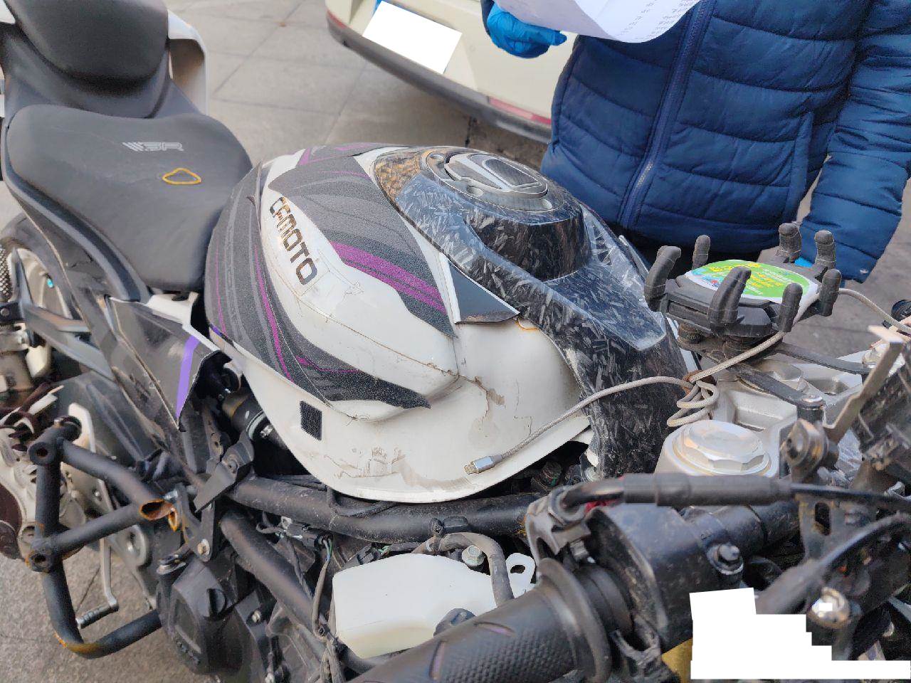 实际车辆为春风牌摩托车