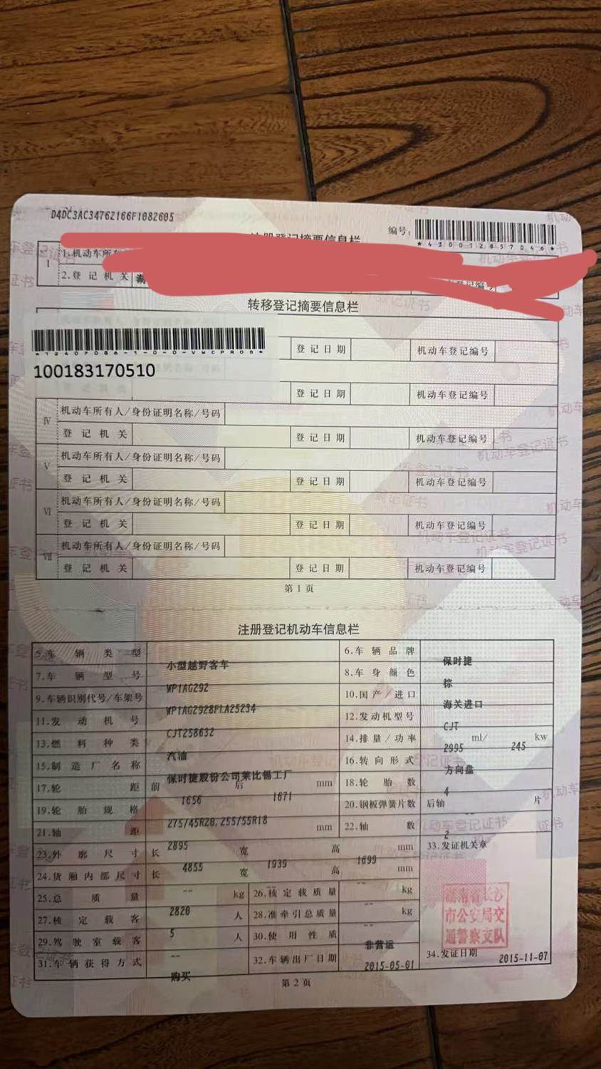 初次登记日期 2015-11-07 车辆名称 保时捷 Cayenne