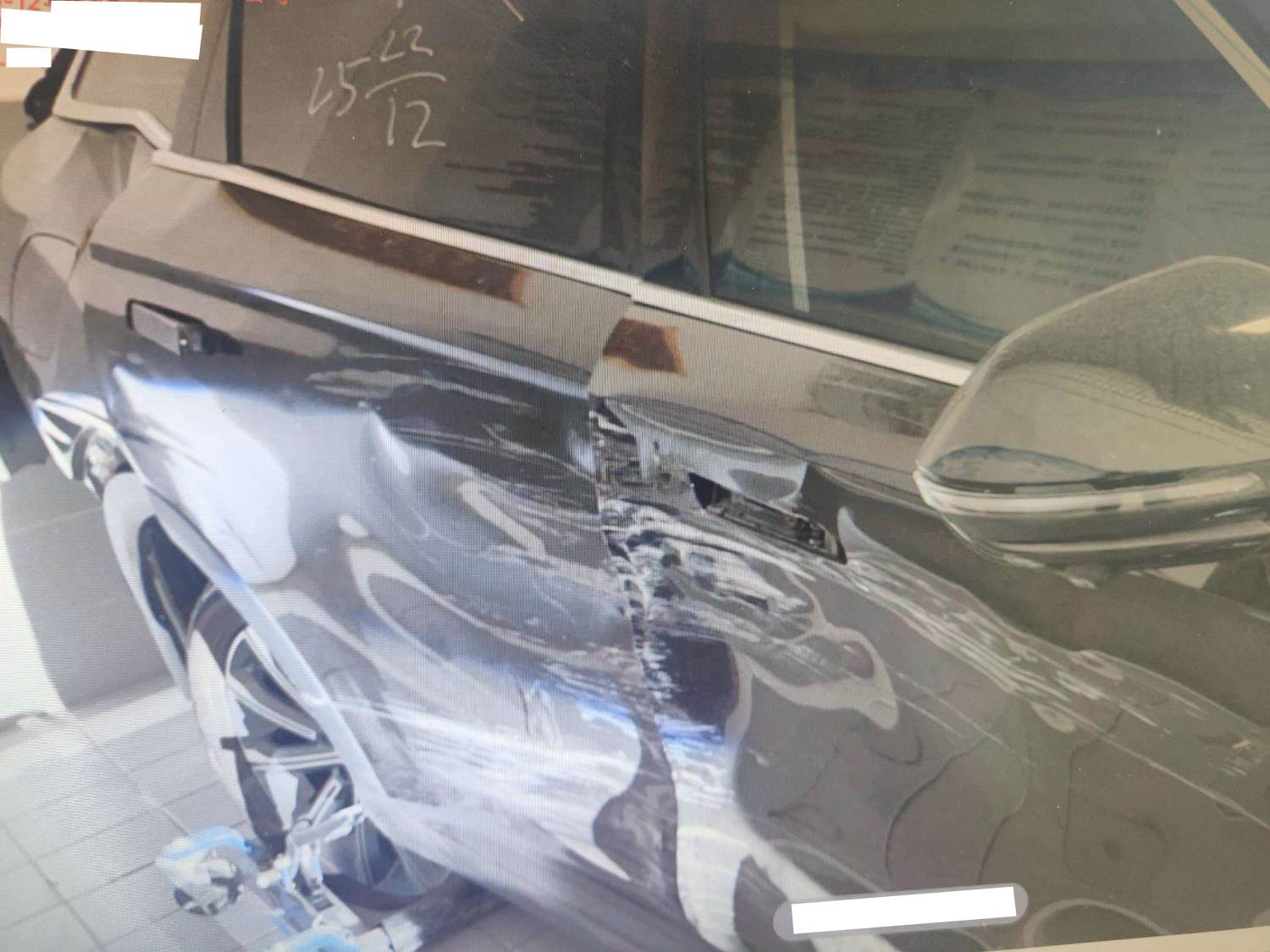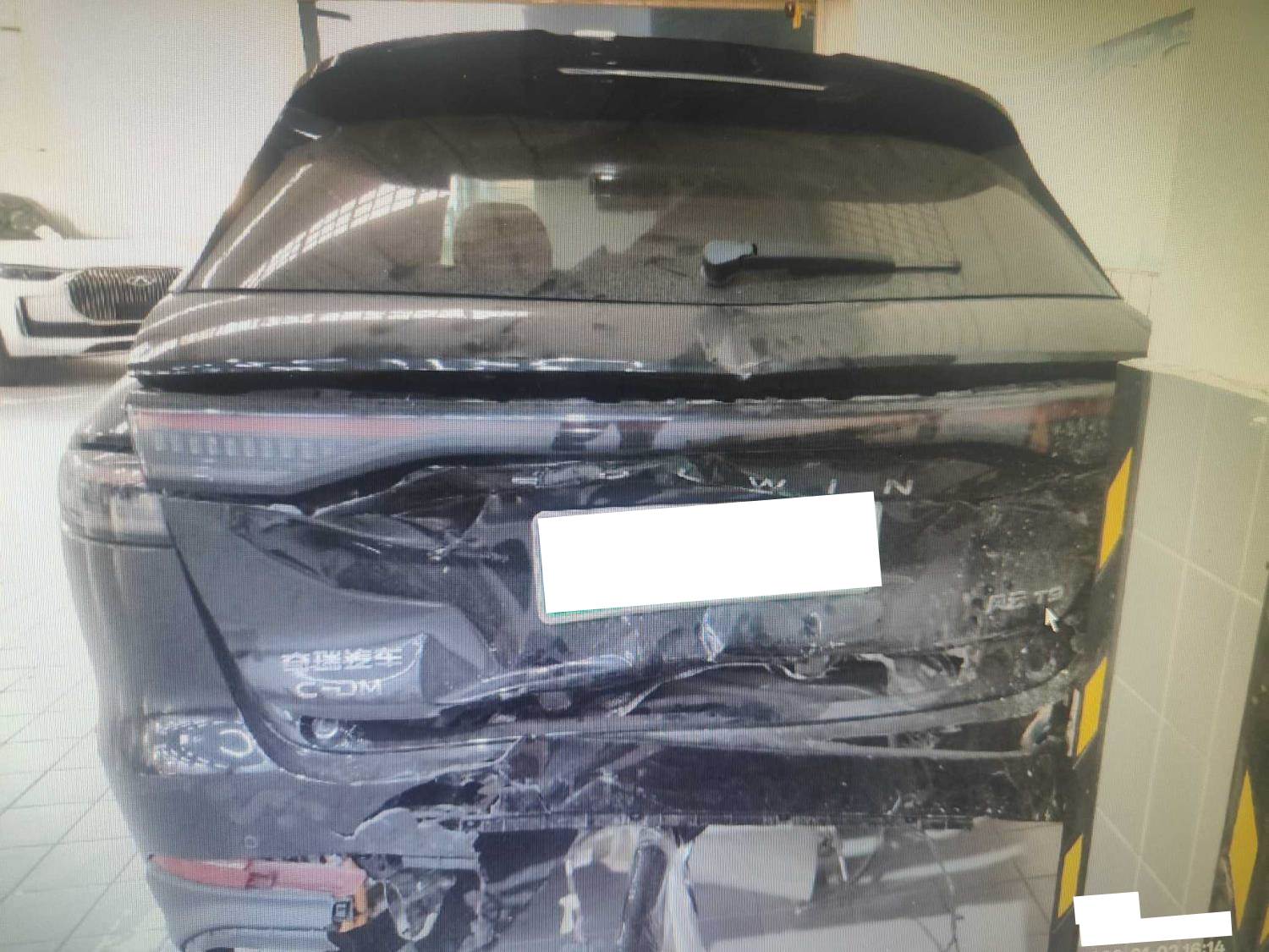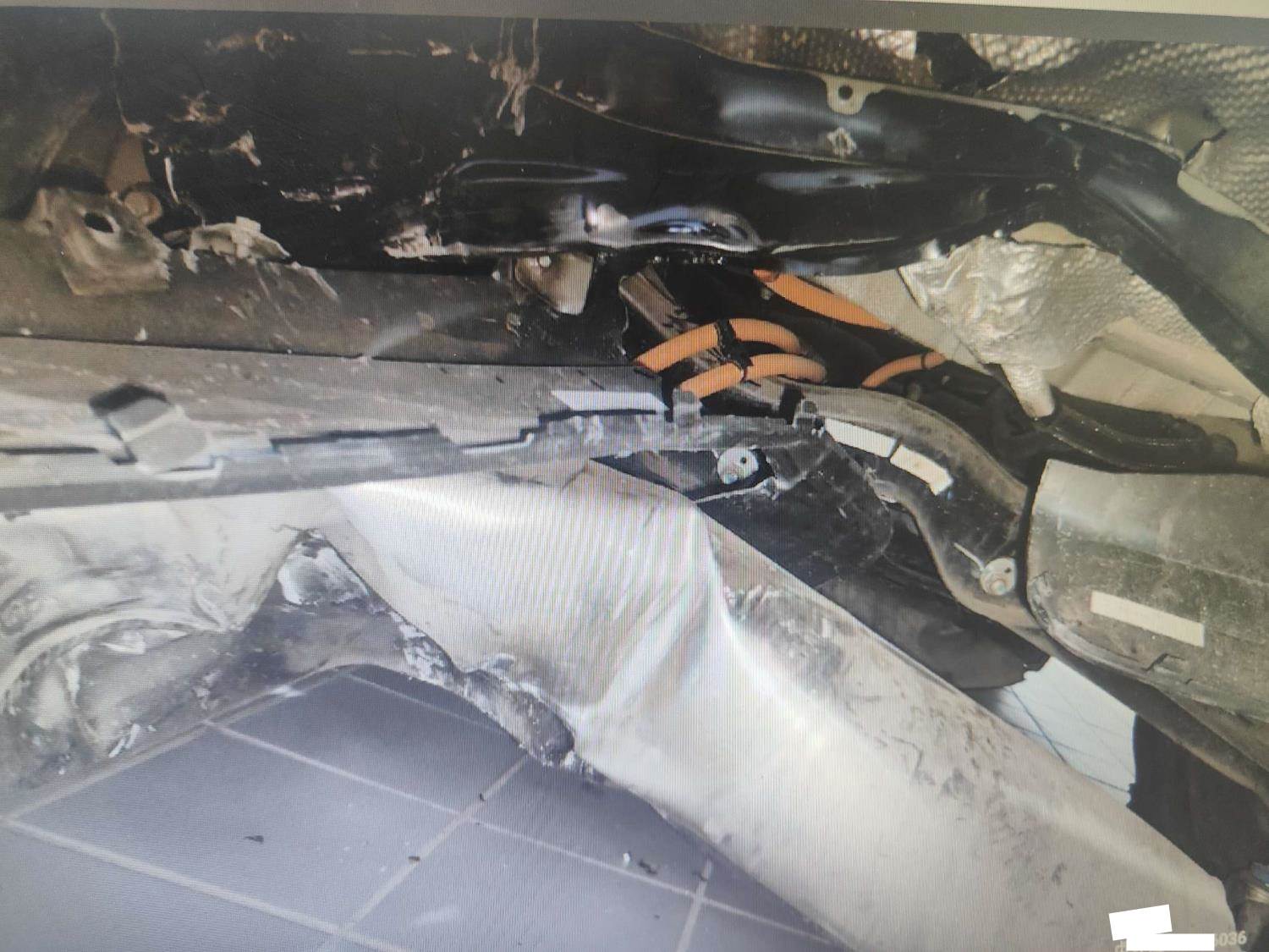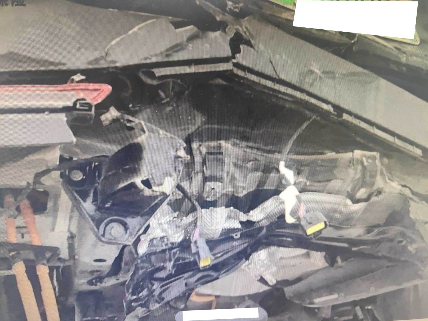 车辆前后受损,没有触发气囊。后部底盘受损严重。后大梁受损严重