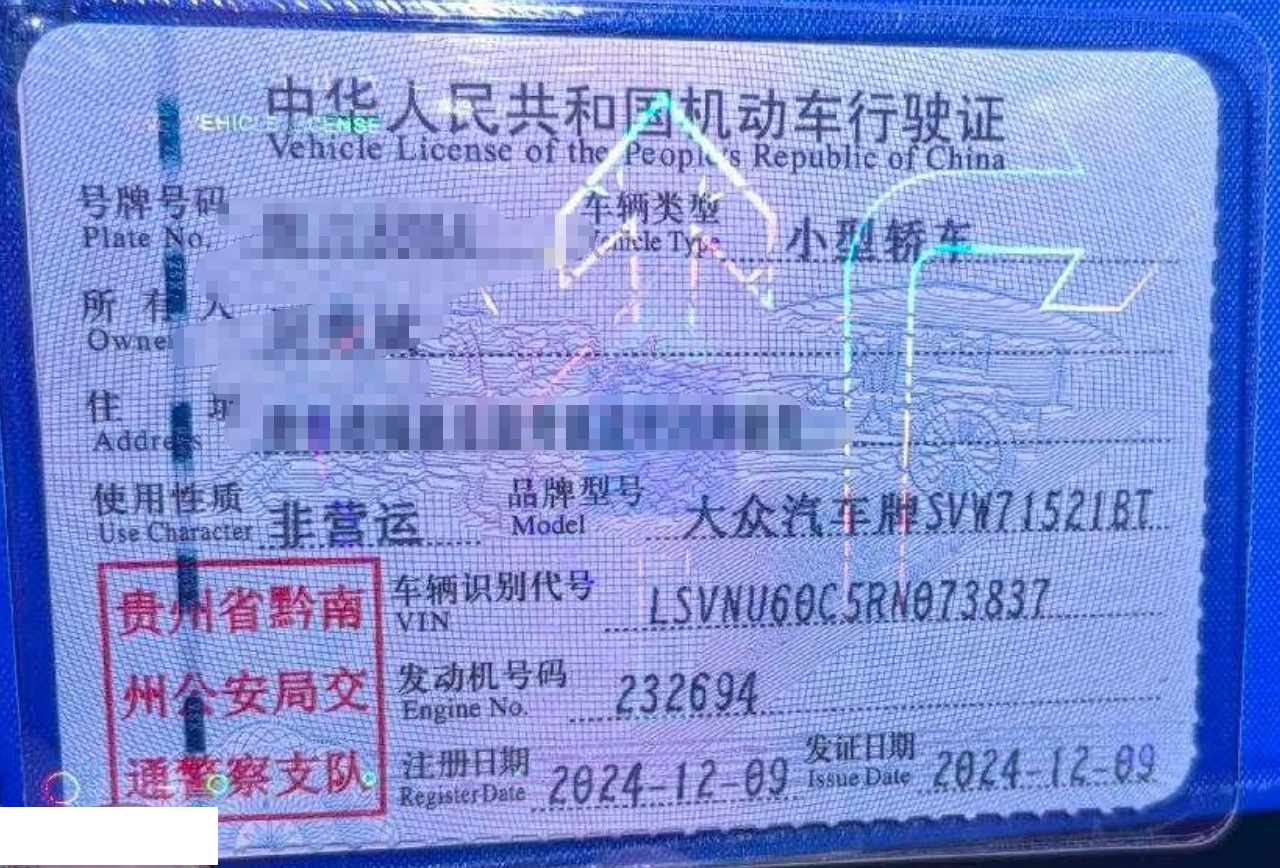 初次登记日期 2024-12-09 车辆名称 大众 朗逸