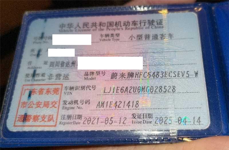 初次登记日期 2021-05-12 车辆名称 蔚来牌