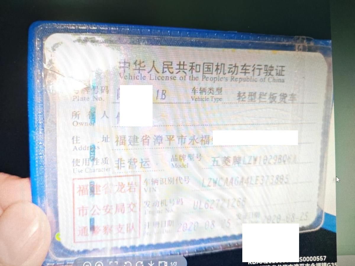 初次登记日期 2020-08-25 车辆名称 五菱汽车 五菱荣光小卡