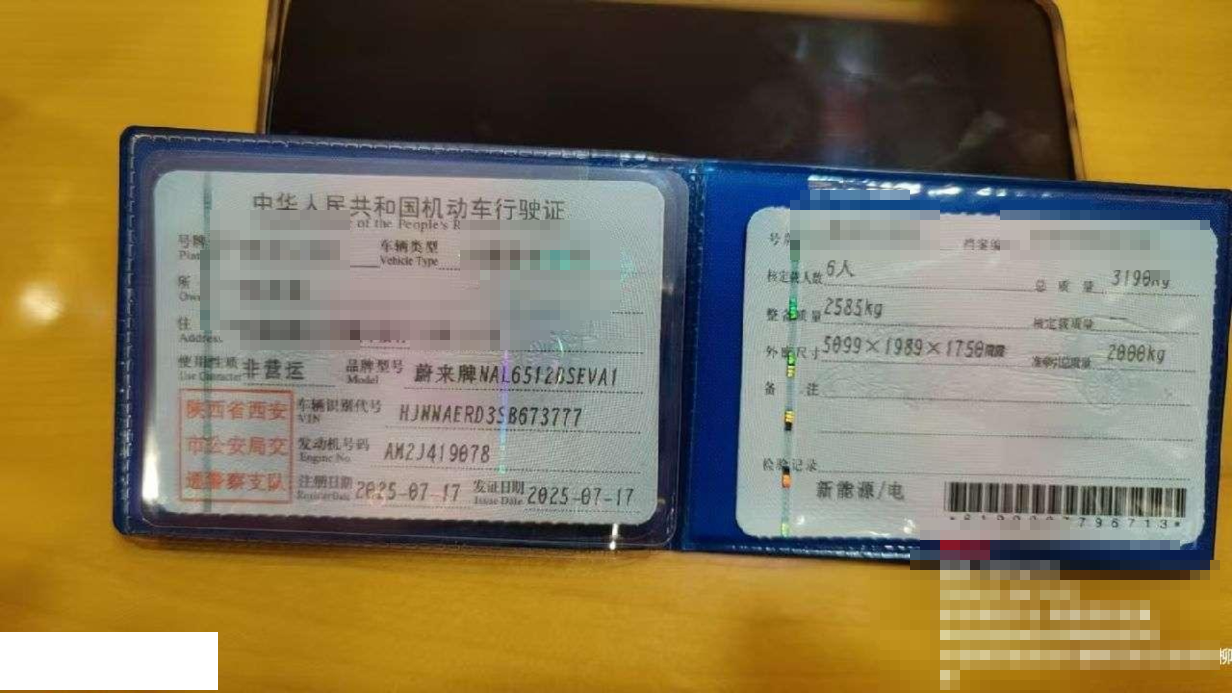 车牌号 陕****** 品牌 蔚来
