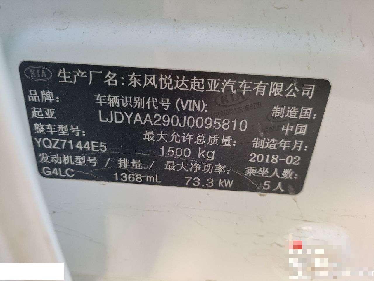 初次登记日期 2018-03-30 车辆名称 起亚K2