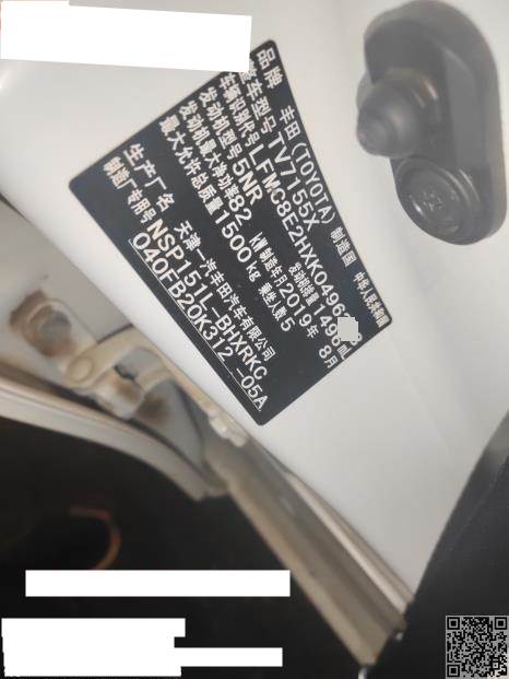 初次登记日期 2019-11-01 车辆名称 丰田 威驰FS