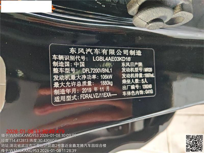 初次登记日期 2020-01-20 车辆名称 日产 逍客