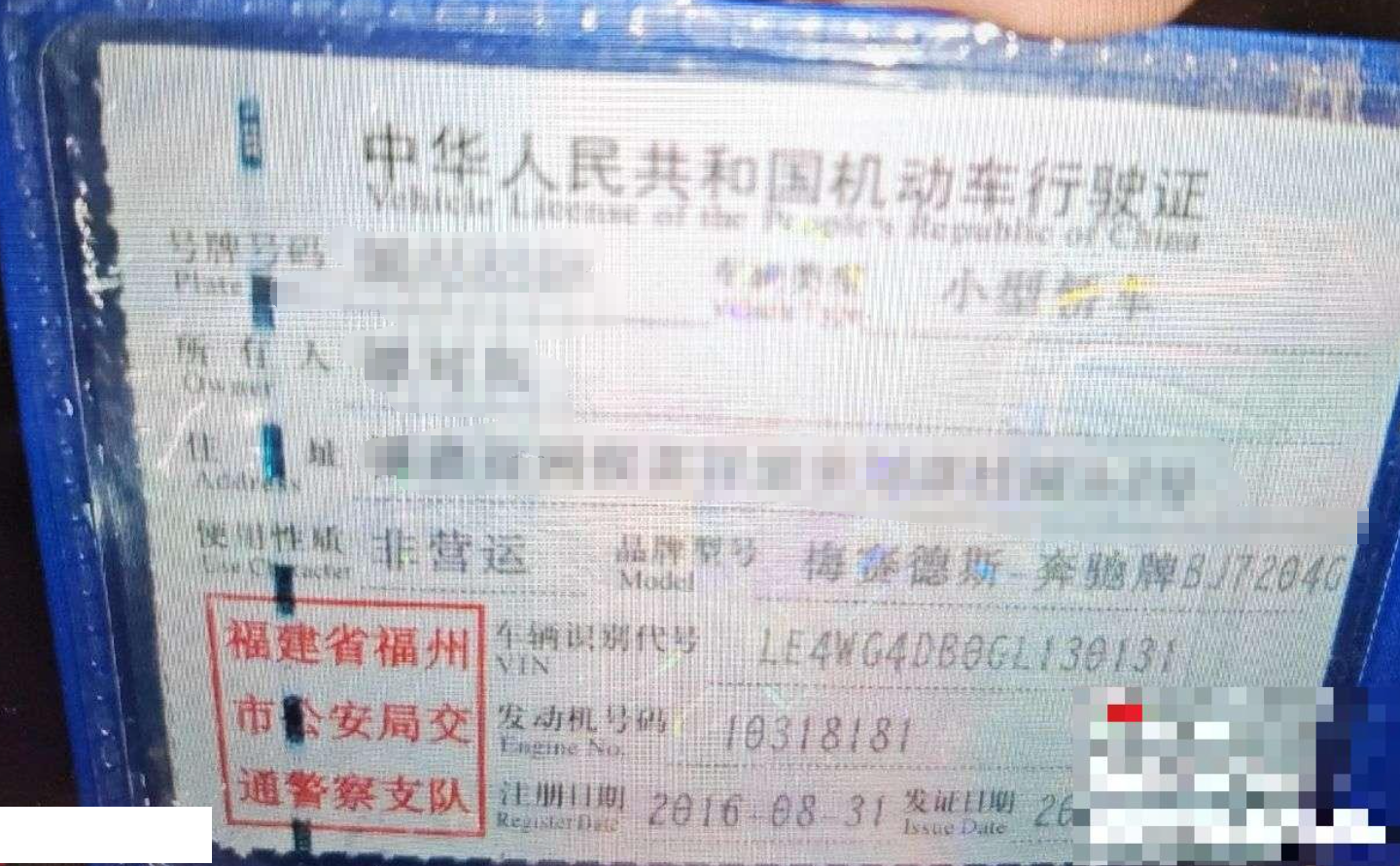 车牌号 闽****** 品牌 奔驰