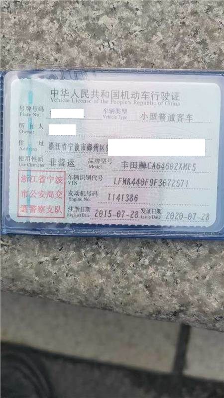 车牌号 浙****** 品牌 丰田