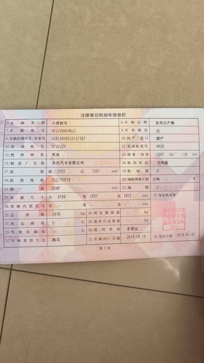 初次登记日期 2019-01-02 车辆名称 日产 逍客