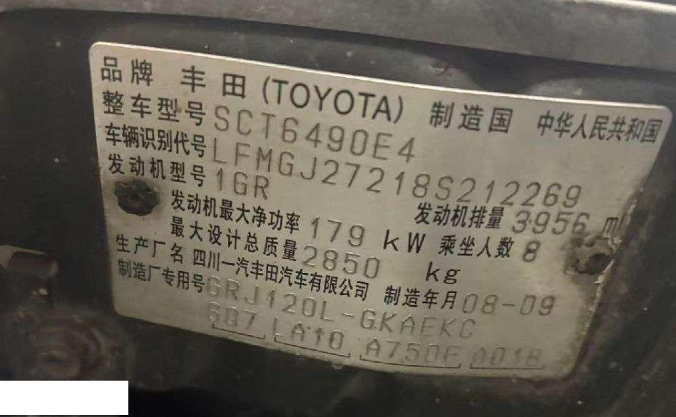 初次登记日期 2009-02-23 车辆名称 丰田 普拉多