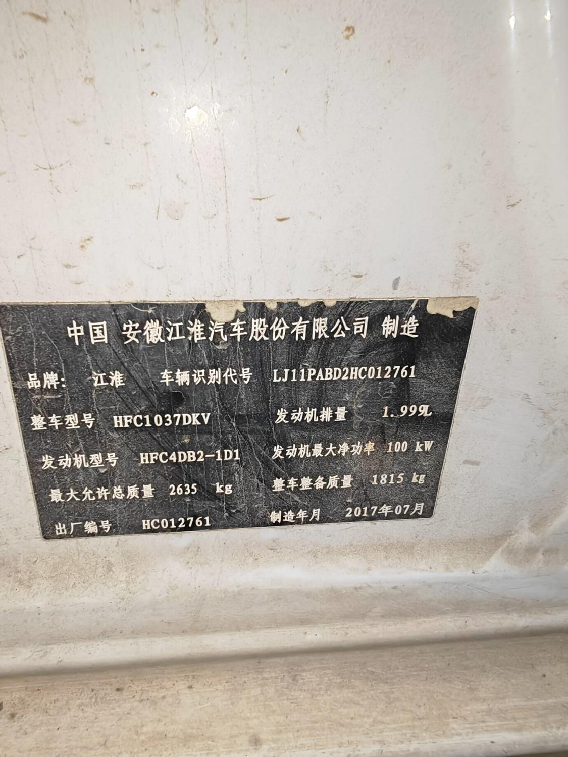 车牌号 闽****** 品牌 江淮