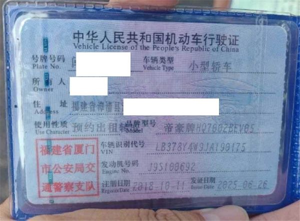 车牌号 闽****** 品牌 吉利