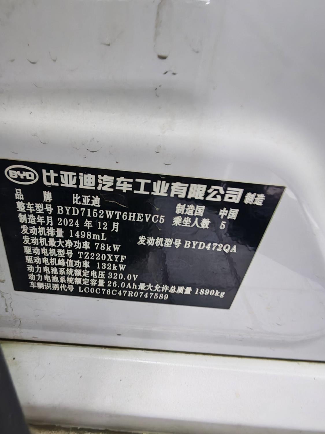 初次登记日期 2025-05-29 车辆名称 比亚迪