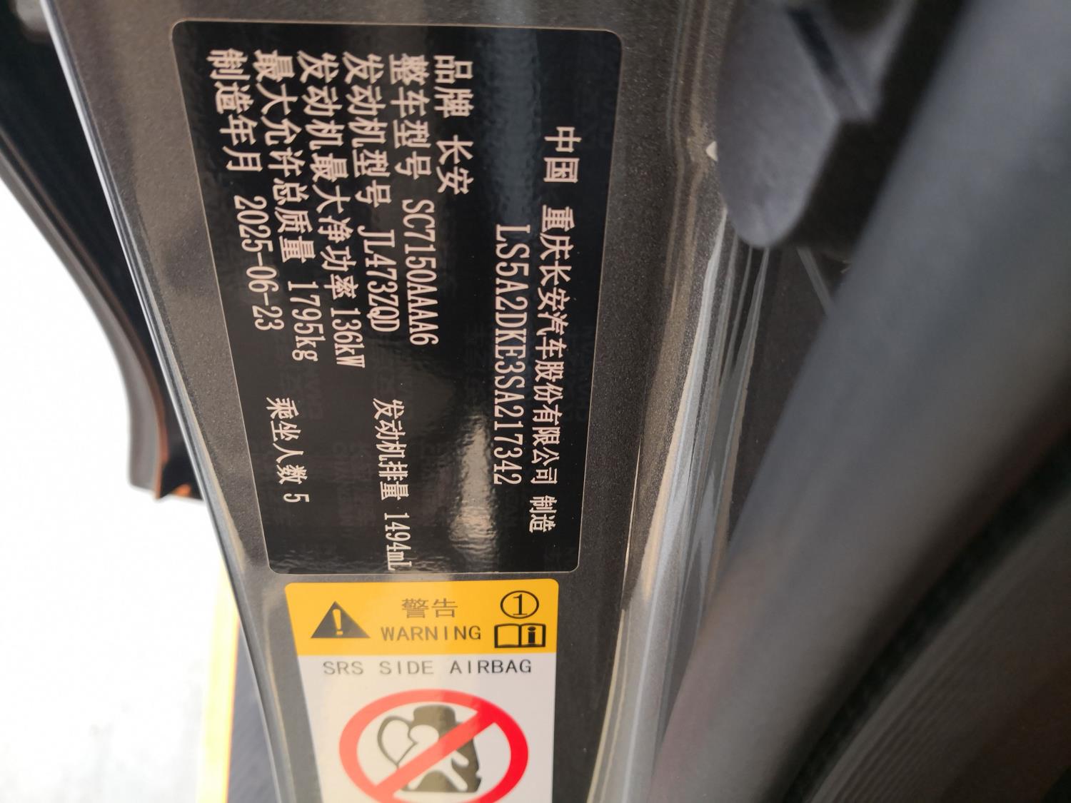 底盘号码 LS5A2DKE3SA217342 变速箱类型 自动