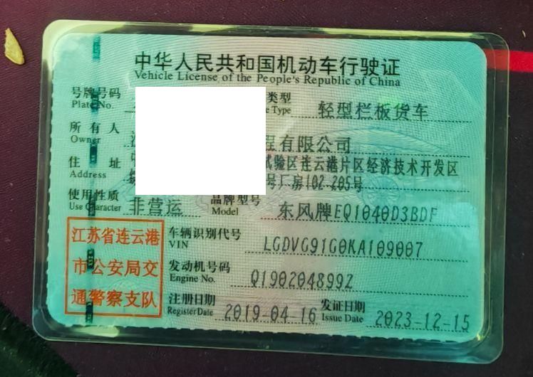 车辆归属地 江苏省连云港市 车辆停放仓库 江苏省连云港市连云港市